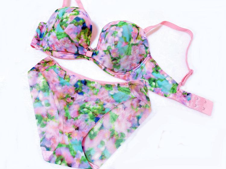 何といってもお花の写真のプリントが蜷川ワールド全開で美しい。ブラジャーもショーツも全体がプリント生地になっているので、全身お花で可愛いい!!パッと見水着みたいに見えるので、友達との旅行などに持って行く事があります。