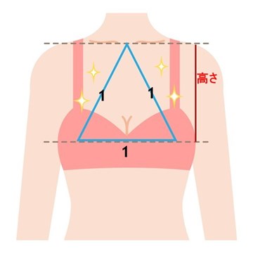 上の図のような正三角形ができる位置がバストがもっとも自然でバストラインが美しく見える位置といわれています。
