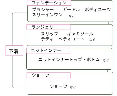 ブラジャーやガードルなどはファウンデーション(基礎下着)といい区別されます。
