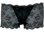 ハーフショーツ(ボーイズレッグ)バックにキラリと光るスワロフスキークリスタルの十字架モチーフが印象的!伸縮性のあるストレッチレースを使用しているからヒップにフィットします。全体にクラッシックなレースをふんだんに使ったエレガントな商品です。バックスタイルのデザインに注目 |