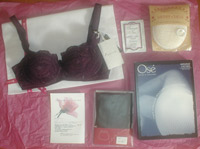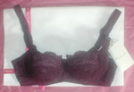 かわいい包装から出てきたのは紫の総レースブラ。定価9,800円
